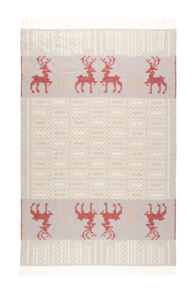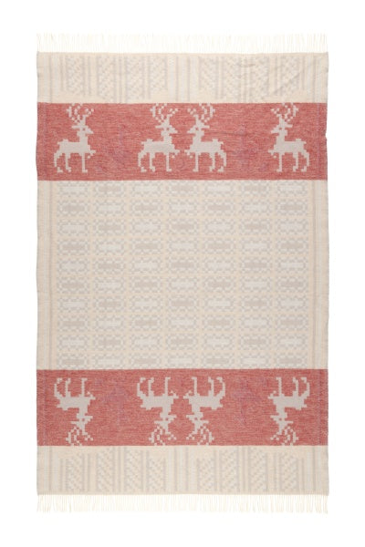 Unsere Wolldecke Scania Michael vereint schwedisches Design, kulturelles Erbe und zeitlose Handwerkskunst. Inspiriert wurde sie von der legendären Textilkünstlerin Märta Måås-Fjetterström, deren Lebenswerk bis heute schwedisches Design prägt. Ebenso finden sich die kraftvollen Rothirsche aus Skåne in diesem Muster wieder – ein Symbol für die Schönheit der südschwedischen Landschaft.