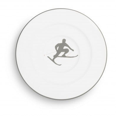 Handbemalter Unterteller mit grauem Skifahrer aus der gourmet Serie.