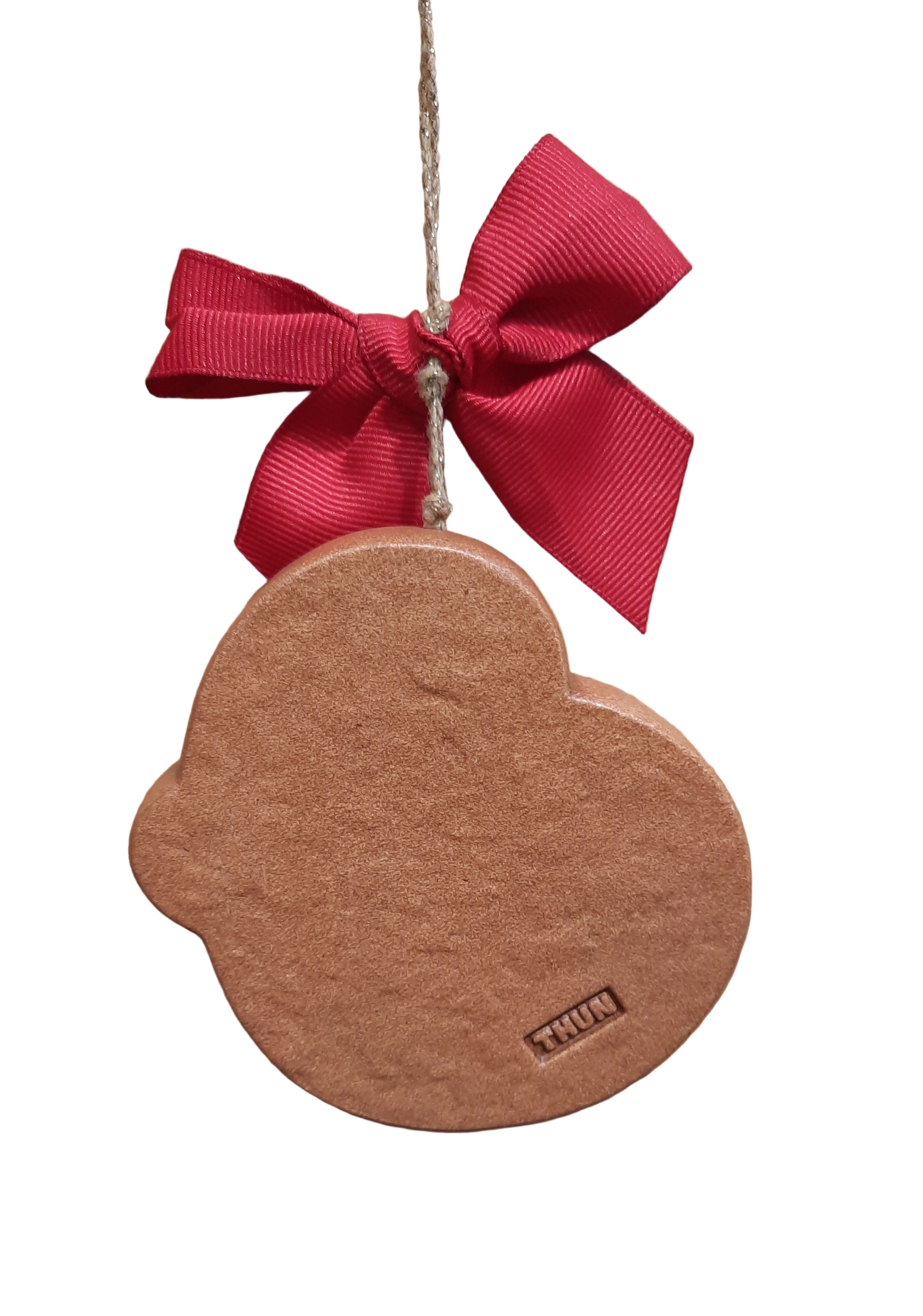 Dieser liebevoll gefertigte Christbaumanhänger aus feiner Thun-Keramik zeigt die Heilige Familie in einem Moment inniger Geborgenheit. Jedes Detail – von den sanften Gesichtern bis zu den zarten Farbnuancen – spiegelt die Wärme und den Frieden der Weihnachtszeit wider.