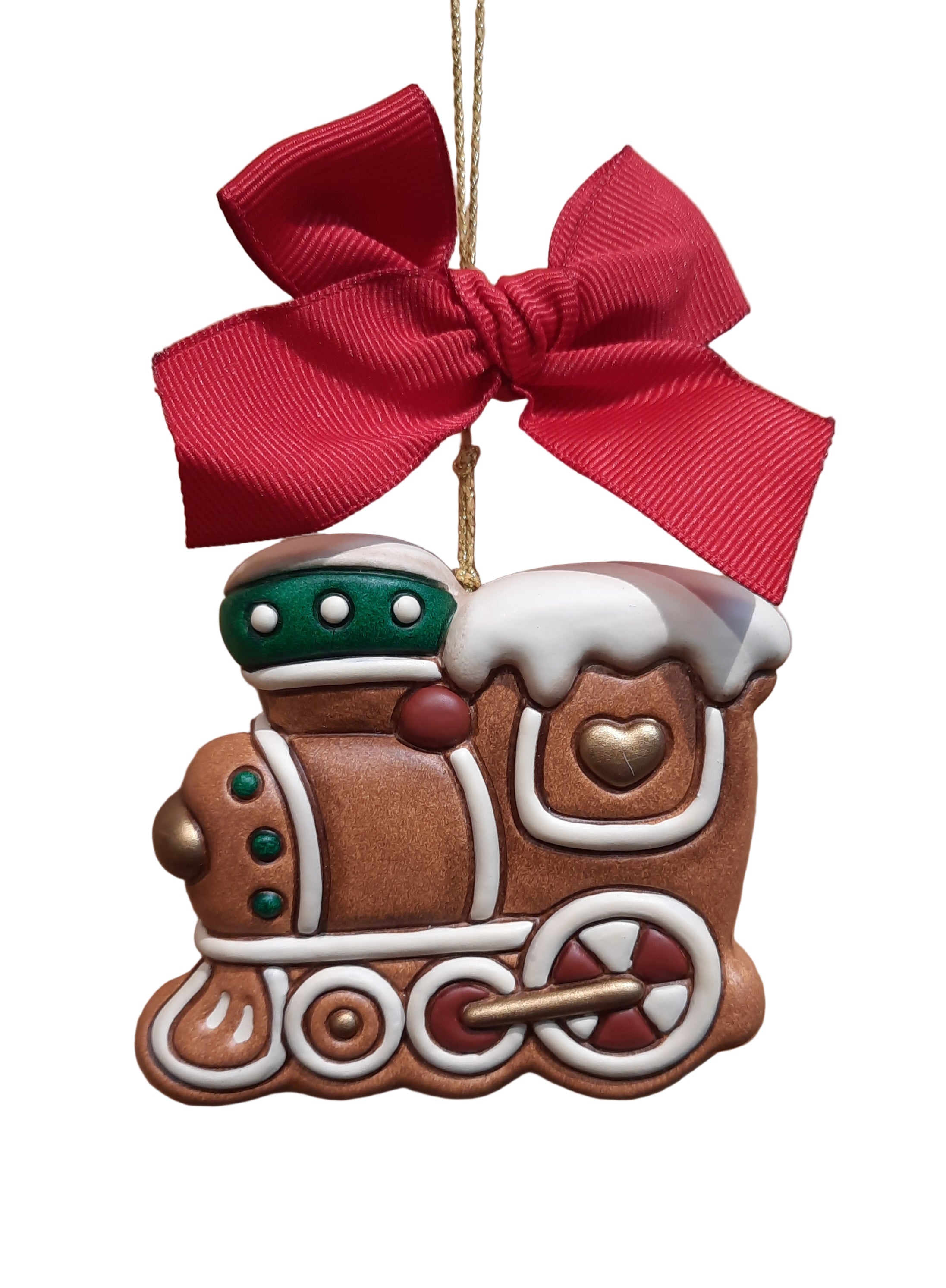 Lokomotive in Lebkuchenoptik – Weihnachtsschmuck aus Thun-Keramik