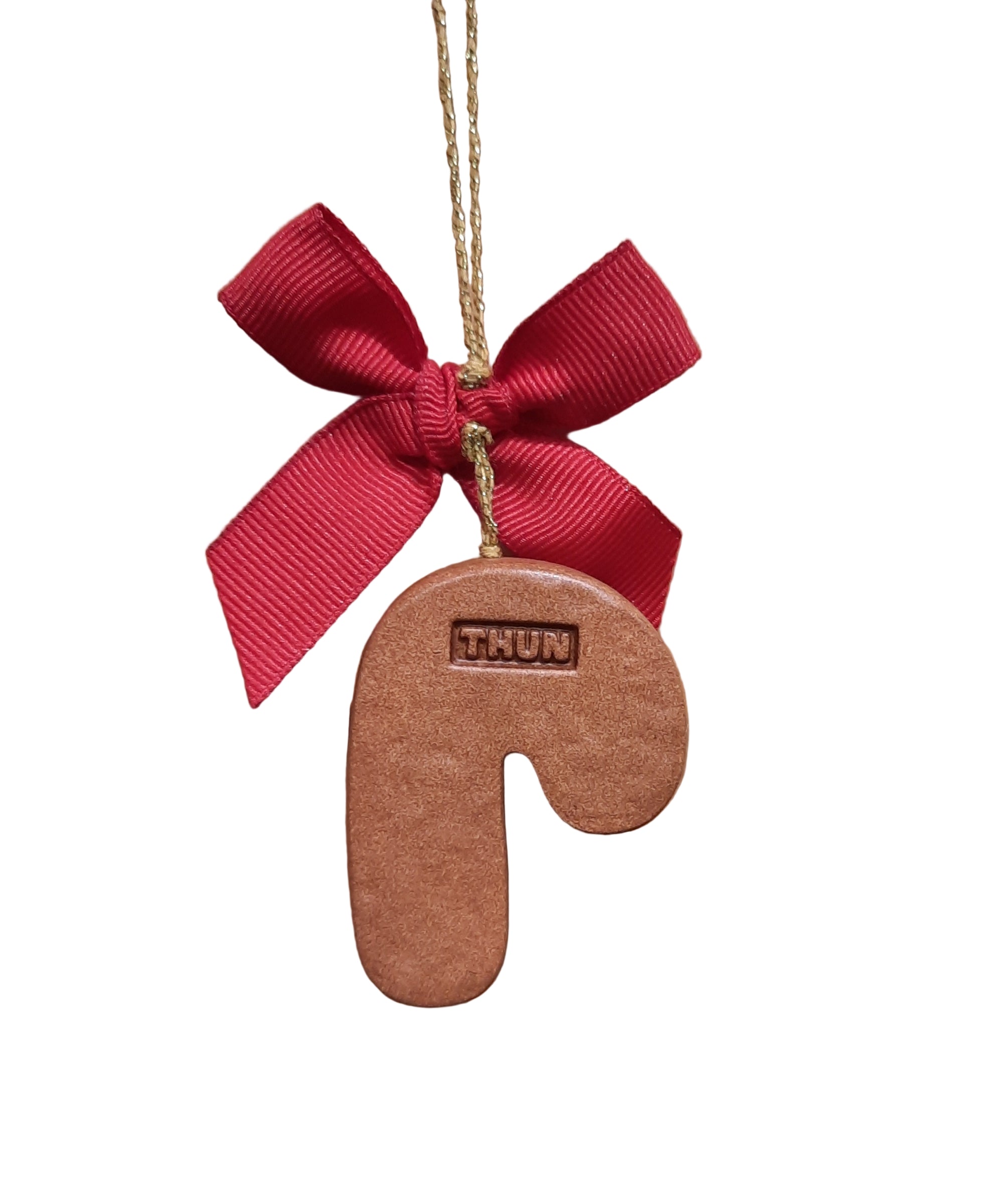 Zuckerstange in Lebkuchenoptik – Weihnachtsschmuck aus Thun-Keramik