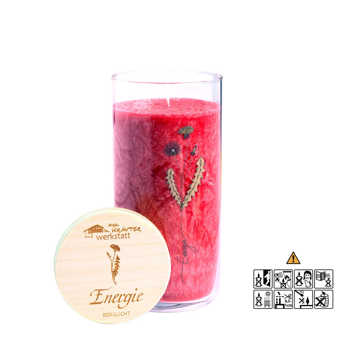 Each jar is engraved with one of the plants from the respective herb mixture of the Berglicht candle.