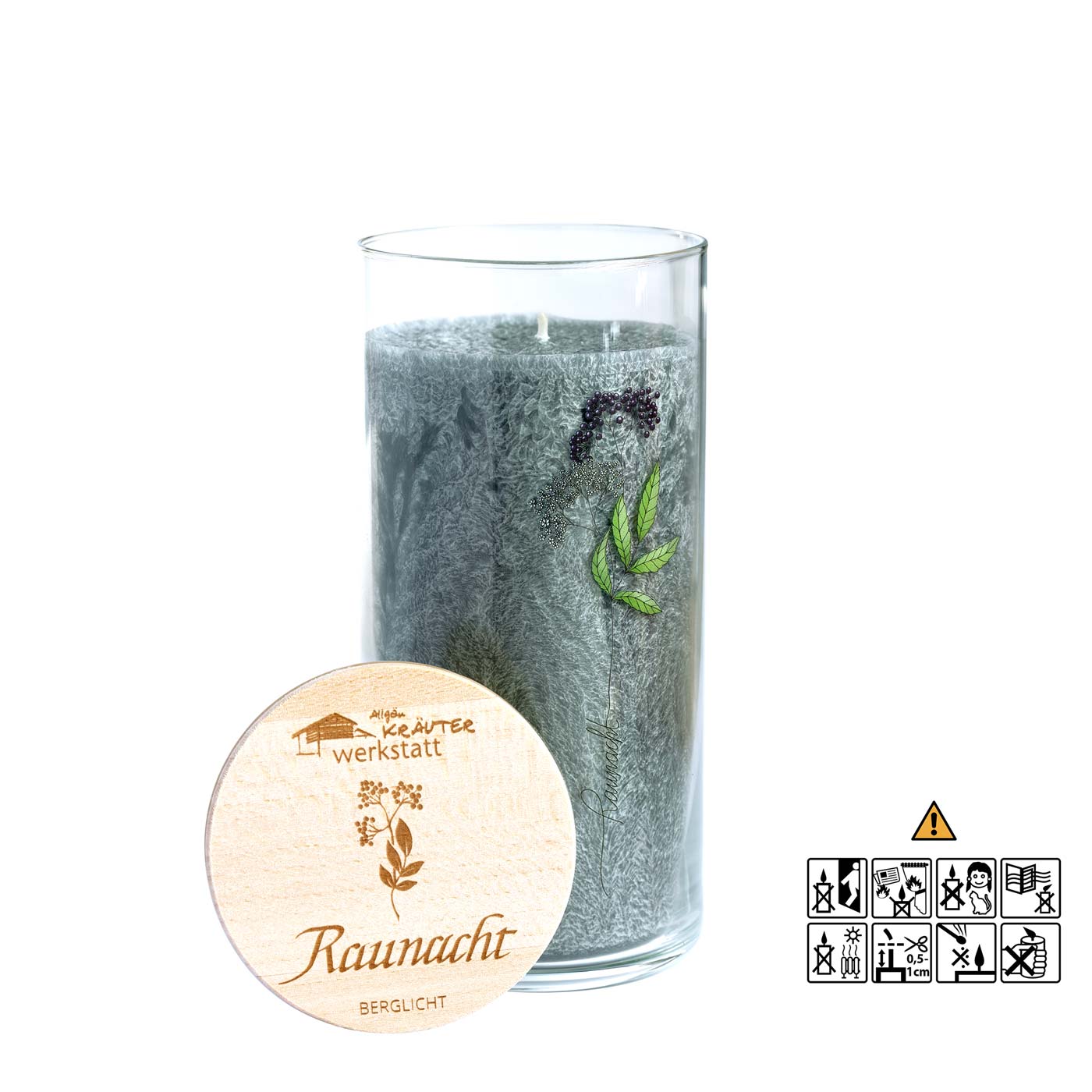 Each glass is engraved with one of the plants from the respective herbal mixture of the Berglicht candle.